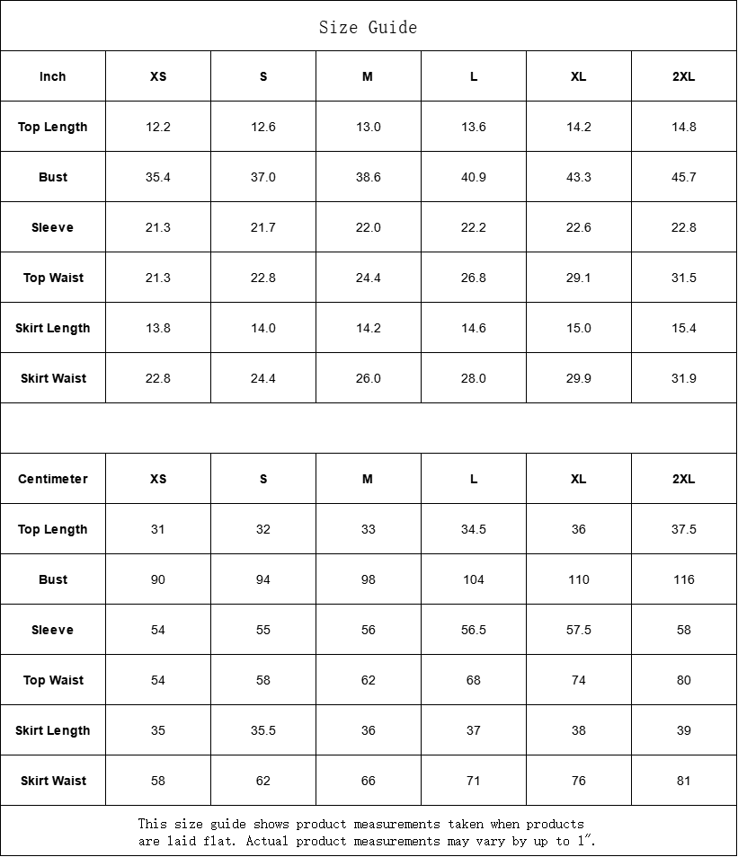 This size guide shows product measurements taken when products are laid flat. Actual product measurements may vary by up to 1".