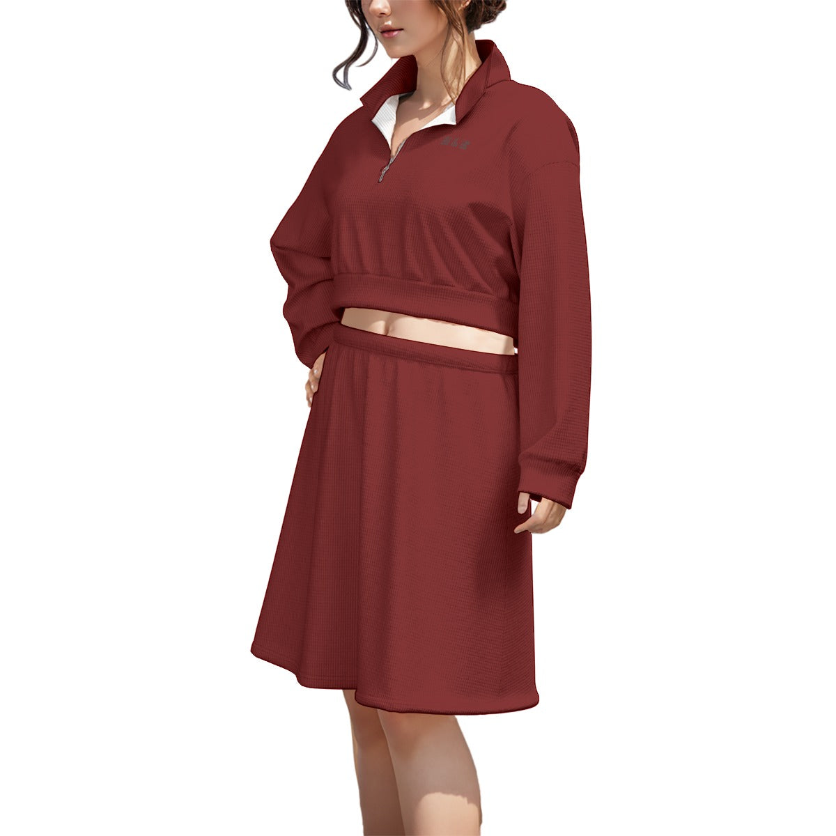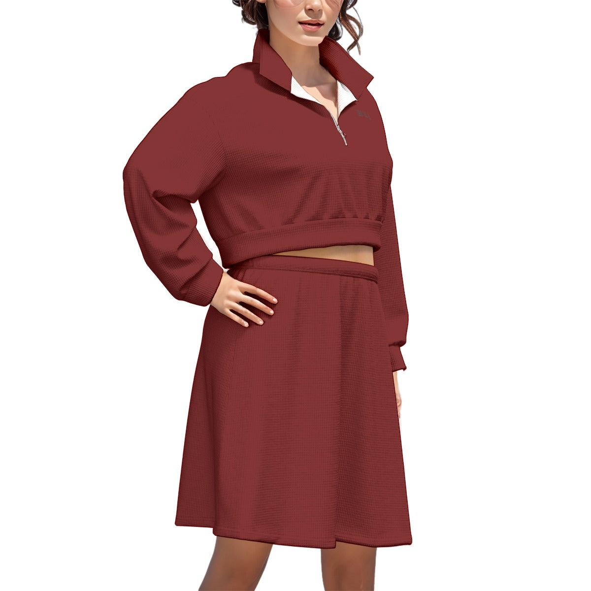 The suit made of waffle has a unique texture, strong silhouette, comfortable and wear-resistant, and the skirt naturally droops. Elastic belt at waist