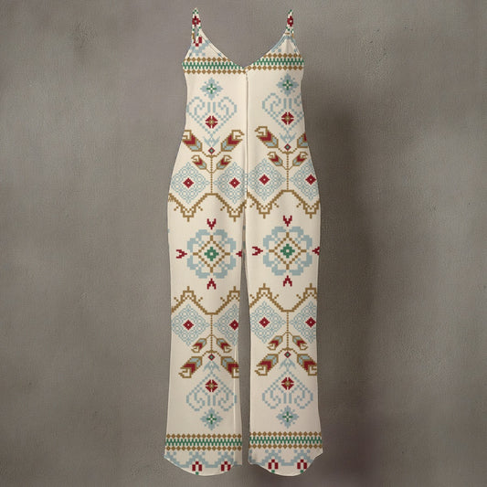 Mono de pierna ancha con tirantes finos y estampado floral para mujer