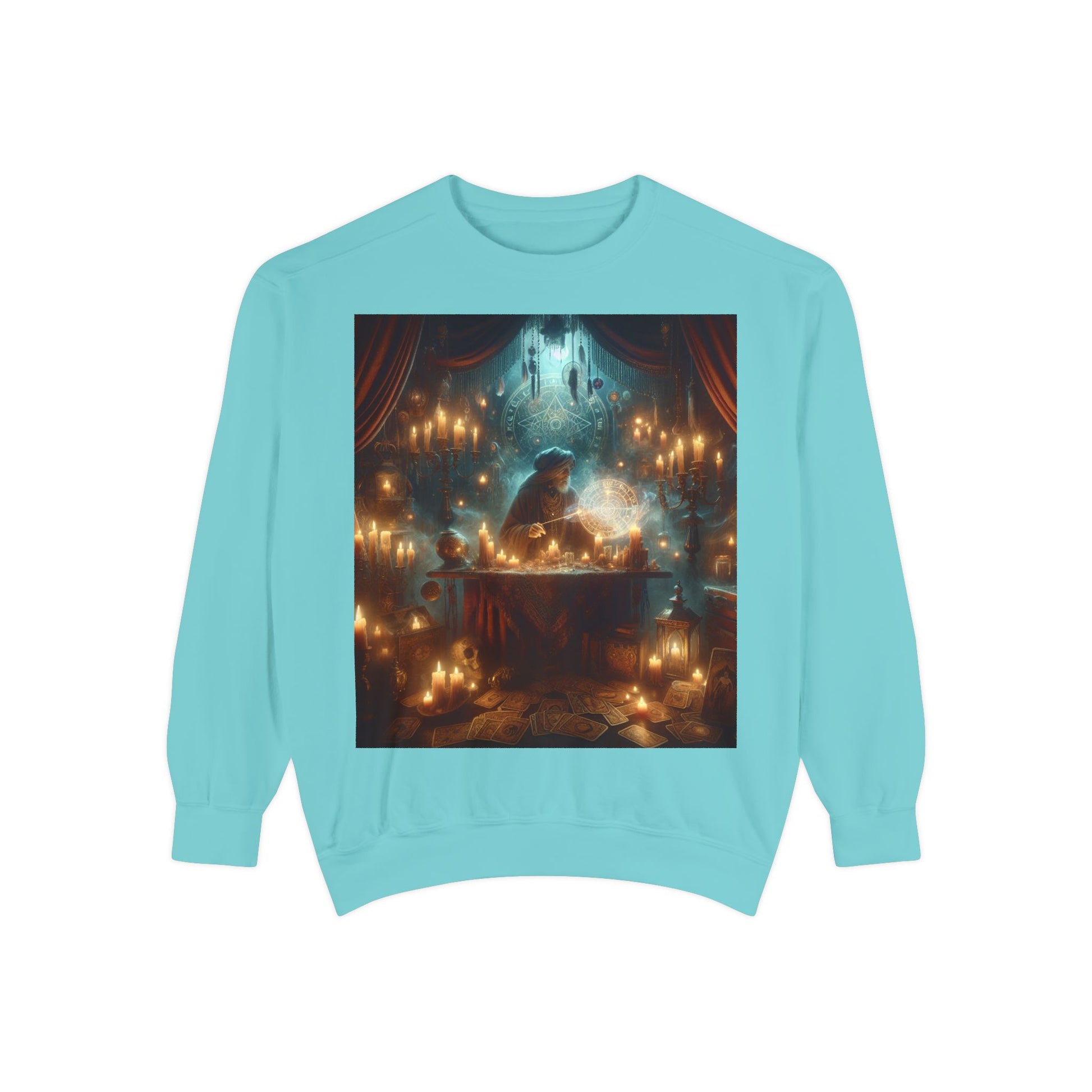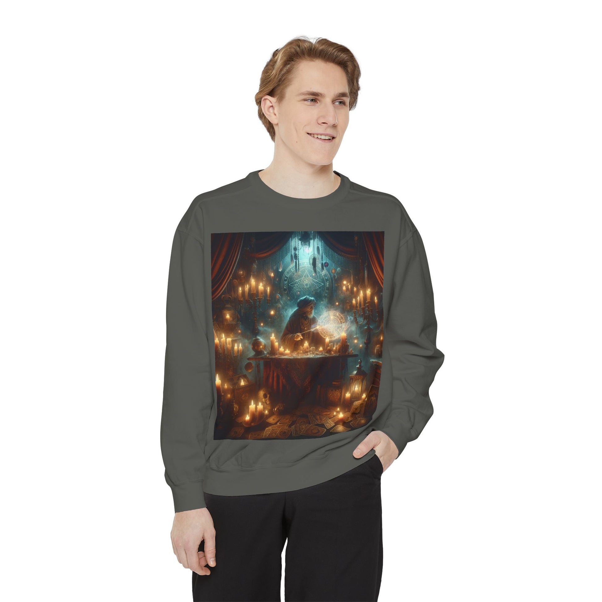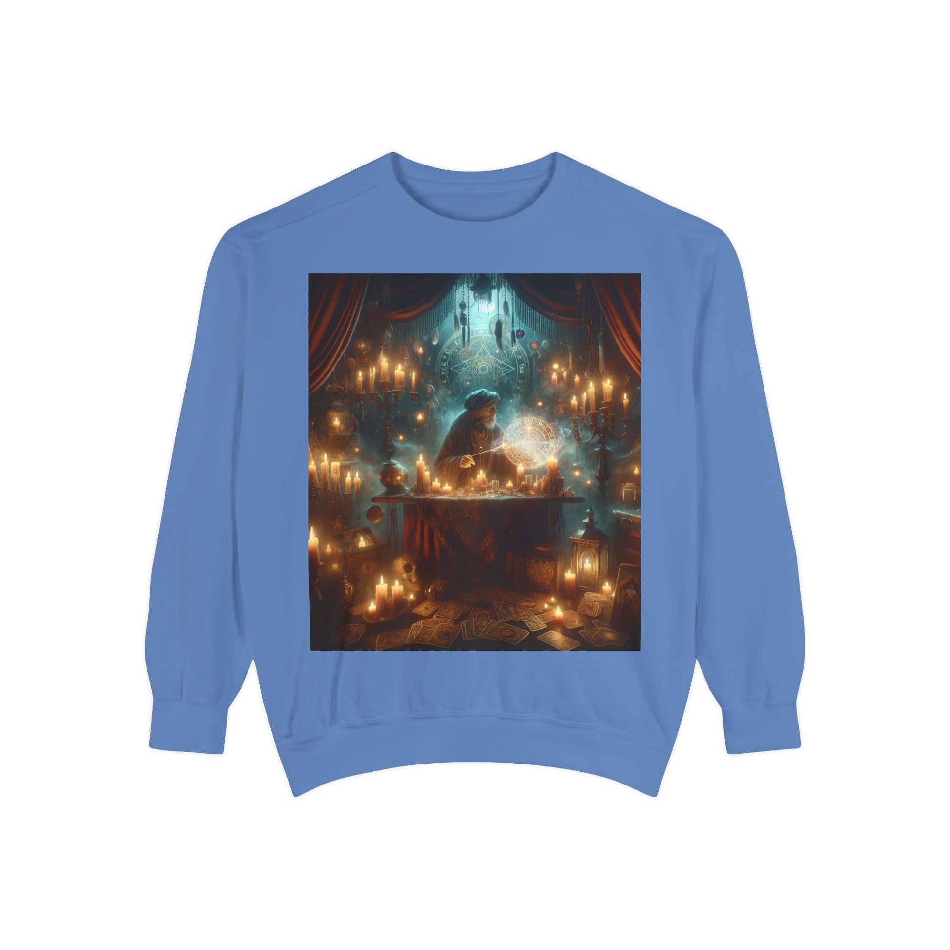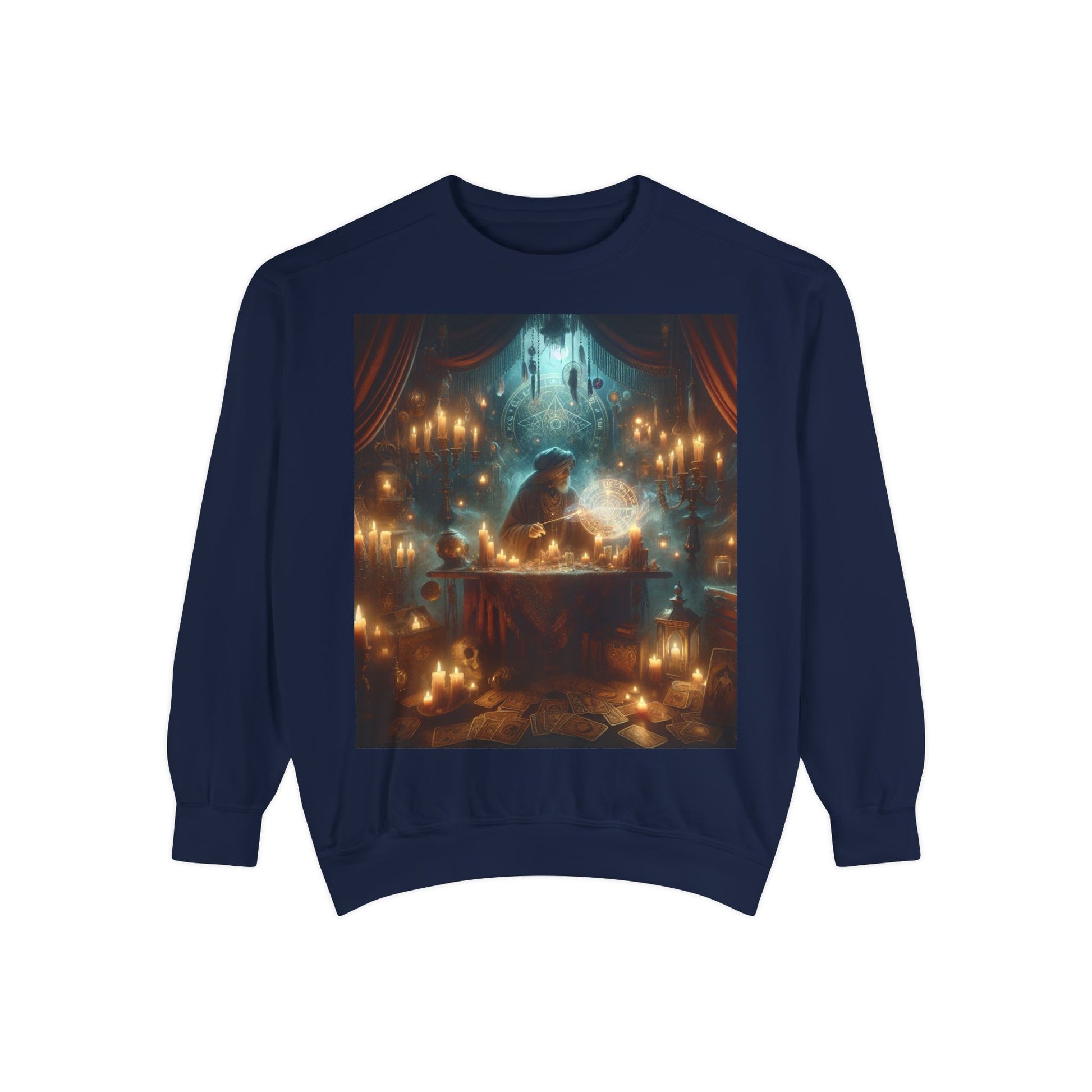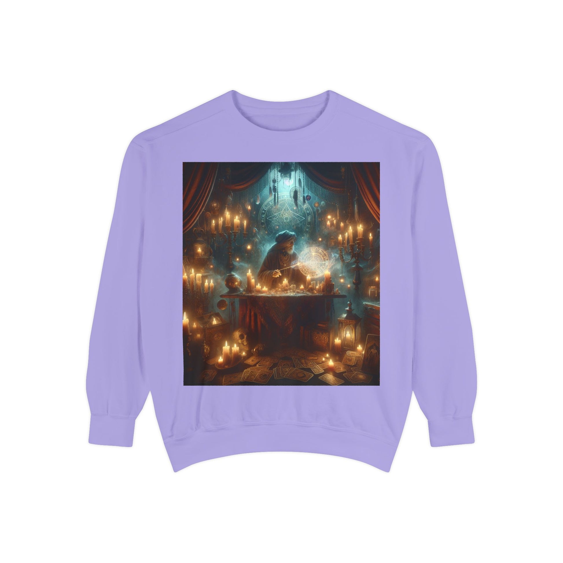 Mystic Candlelight Unisex Garment-Dyed Sweatshirt with Tarot Design